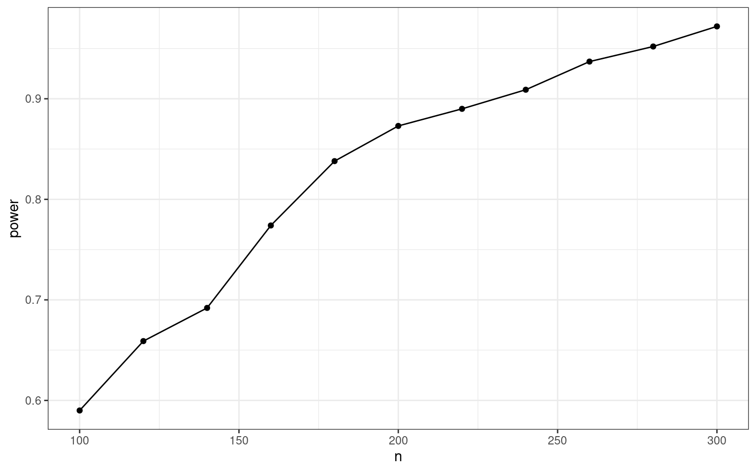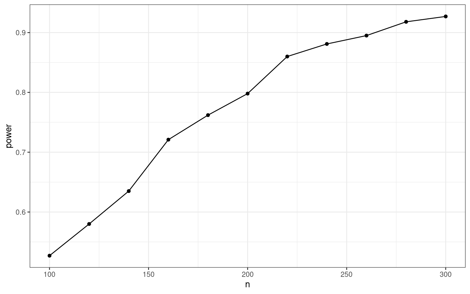 ggplot(result, aes(x = n, y = power)) +